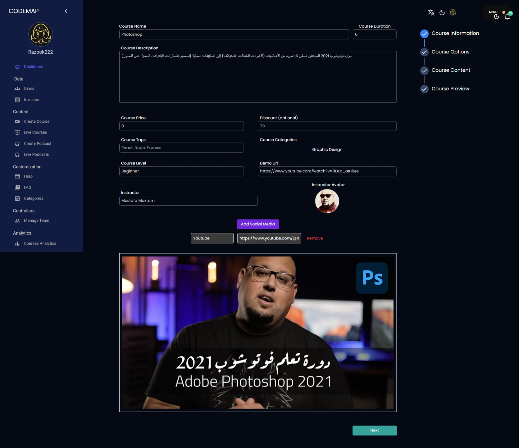 CodeMap Academy is a full e-learning platform I built using Next.js + Node.js/Express + MongoDB, offering a complete learning experience with courses, podcasts, roadmaps, payments, dashboards, and real-time features.