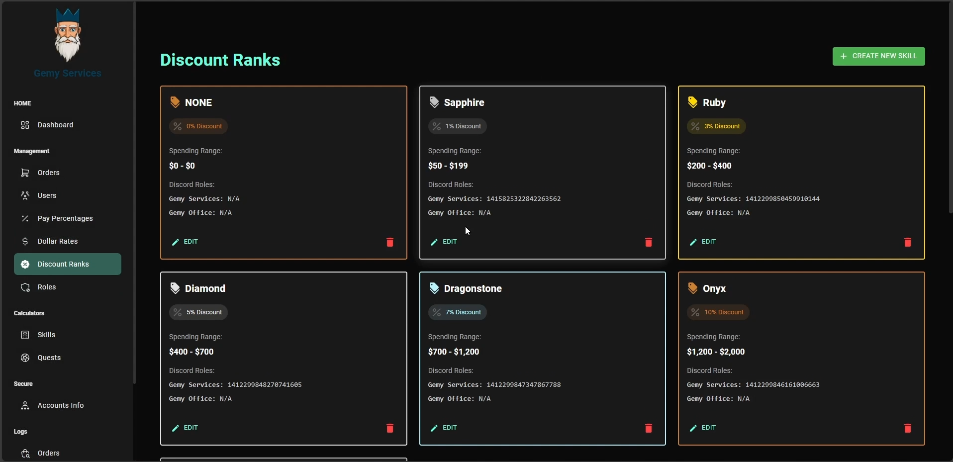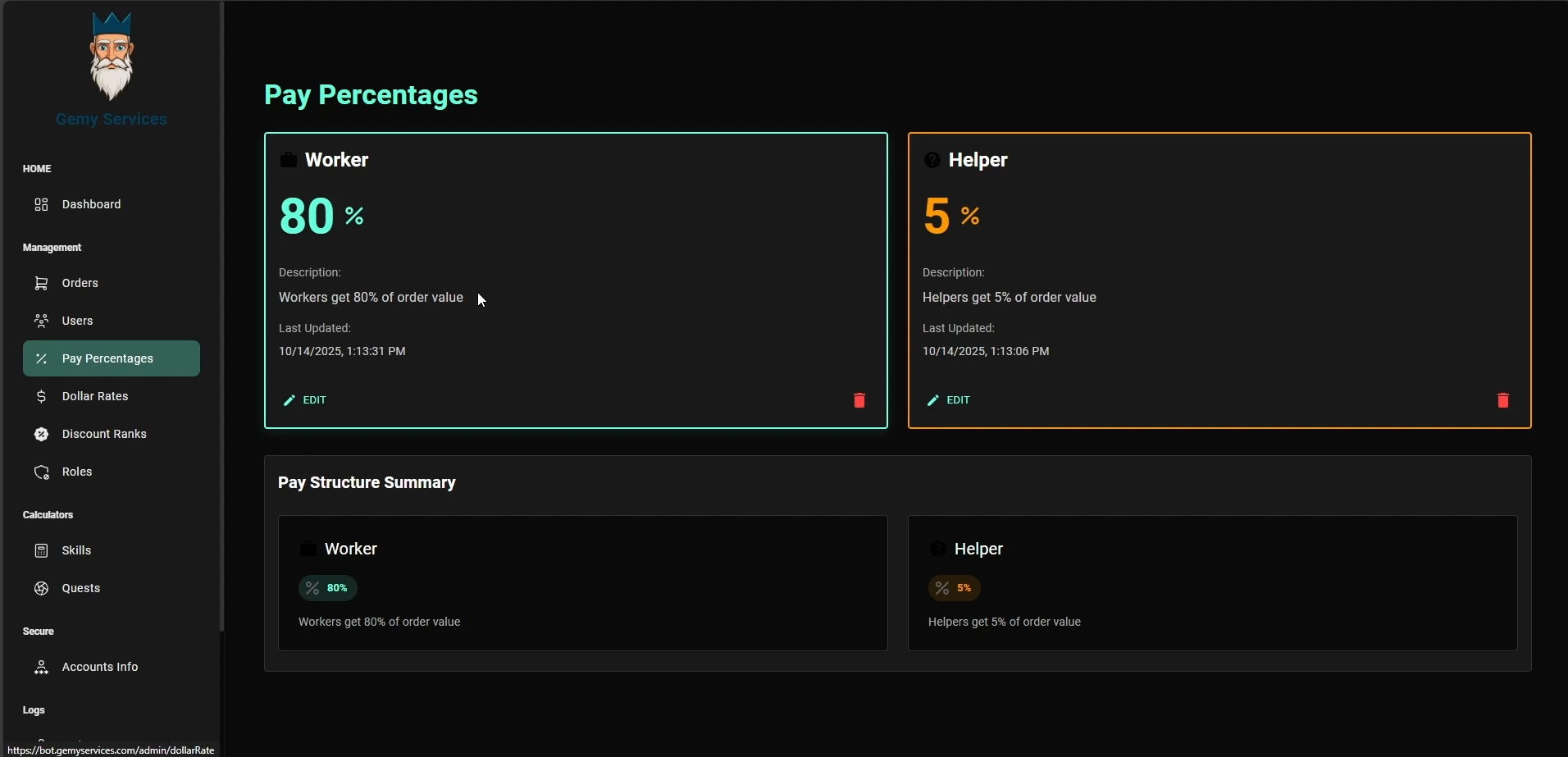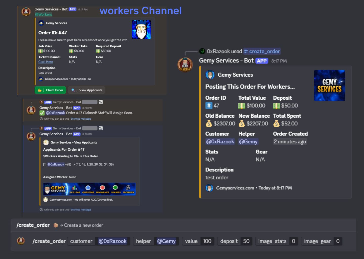 🎮 Gemy Services — a complete (Bot + Dashboard) ecosystem built specifically for Old School RuneScape (OSRS) service Discord servers.